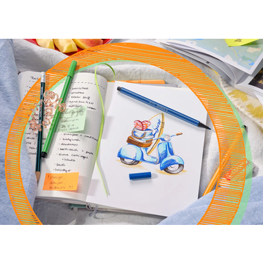 STABILO Pen 68 verspricht Kreativität ohne Ende - kein Wunder, dass der STABILO Pen 68 perfekt zu den aktuellen Trends rund um Bullet Journaling, Sketchnotes oder Hand Lettering passt. Aber auch Fans von Mandalas sowie Freunde des Malens und Zeichnen sind begeistert von der Vielseitigkeit des hochwertigen "Filzers". Kreative und (Hobby-)Künstler lieben die große Vielfalt, mit der sich jede Idee farbenfroh umsetzen lässt. Die robuste Spitze sorgt dabei für eine gleichmäßige Farbabgabe und eignet sich hervorragend zum Ziehen von kräftigen Linien und Füllen von deckenden Flächen. Ganze 24 Stunden kann er ohne Kappe offen liegen, ohne auszutrocknen - perfekt, wenn das kreative Projekt mal etwas mehr Zeit in Anspruch nimmt.